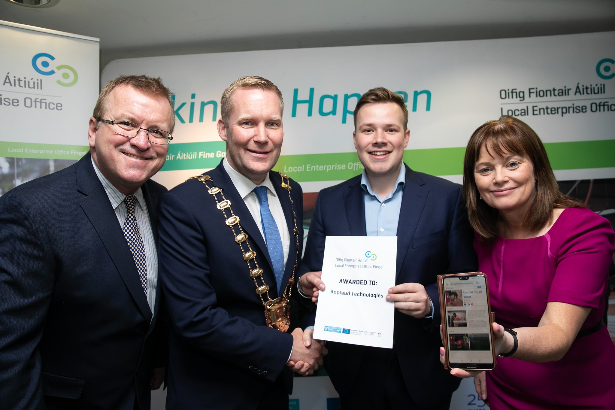 Applaud were delighted to have secured first place and a prize of €7,500 in Trinity's Dragons Den competition, in front of a panel including Alison Cowzer, Sean Gallagher and Eamon Quinn.